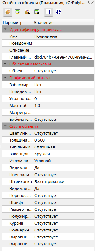 Перед созданием абонента необходимо создать точку поставки. Для этого создаем две полилинии со следующими свойствами обьекта и объединяем их в группу.