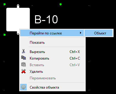В появившемся контекстном меню выберите пункт Перейти по ссылке->Объект.